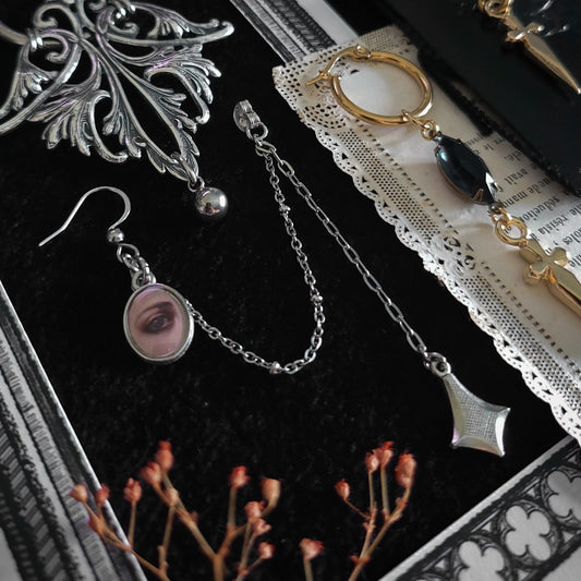 Dark academia aesthetic jewelry designs, a contemplation on love and grief. 2024 collection.