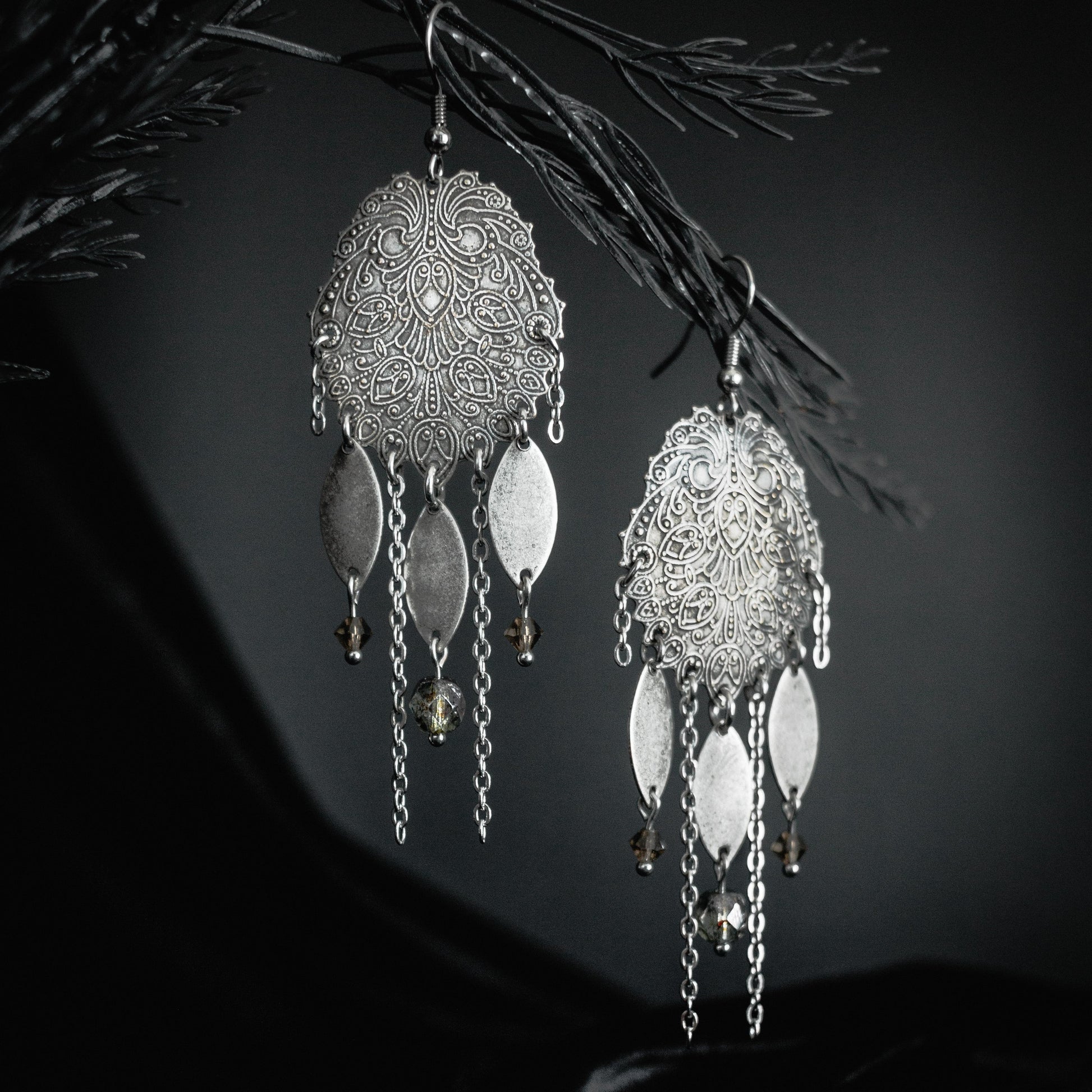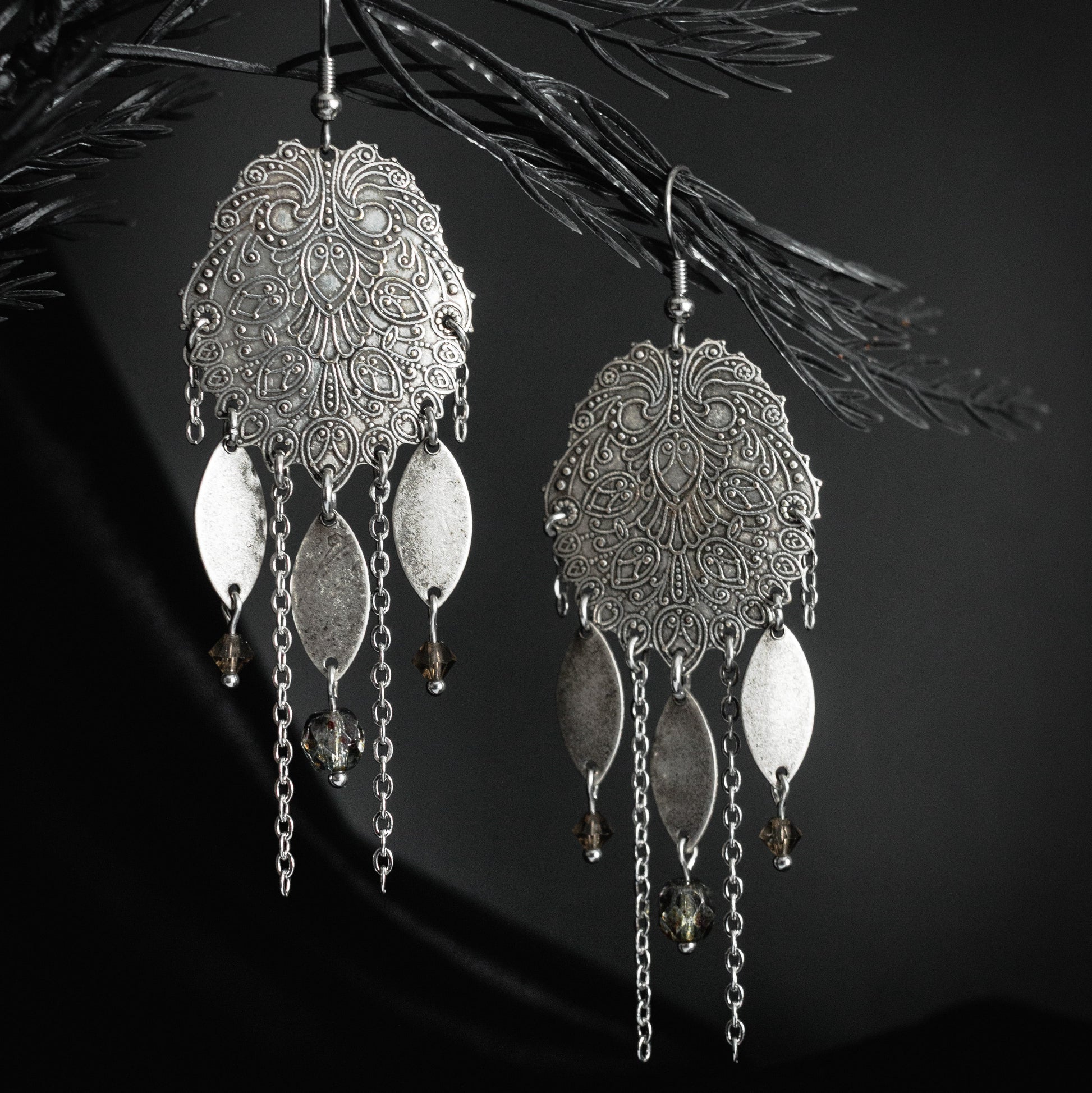 Dark rustic / boho style earrings inspired by the biblical Seraphim angel.