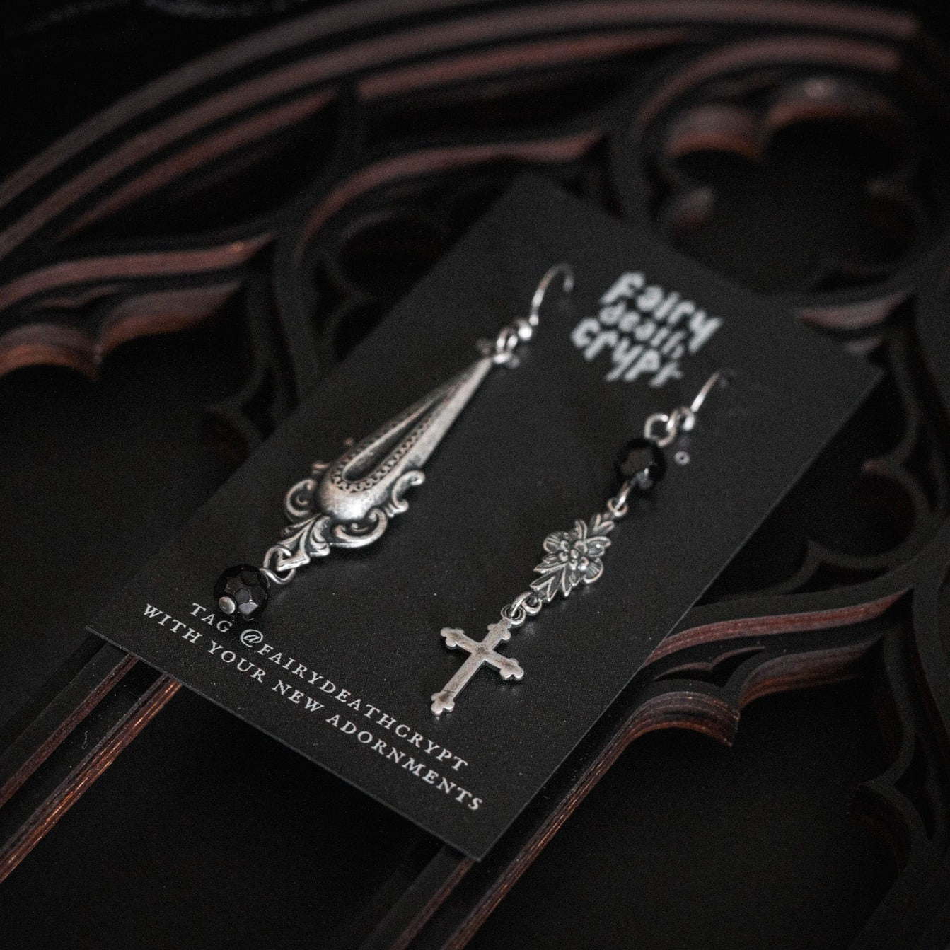 Death Crypt Jewelry uses a variety of metal materials which are listed in each item description. These metals may naturally tarnish or show signs of wear overtime; so it is especially important to practice proper care and storage of your jewelry. The best way to store each jewelry piece is in a small ziplock then into a cool closed case or pouch. Jewelry should be cleaned often and gently with a polishing cloth.